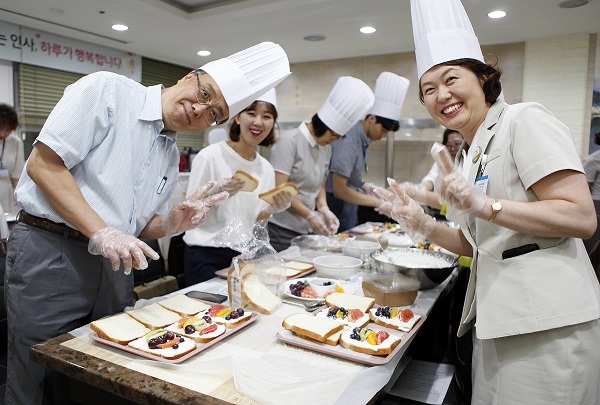 가톨릭대 대전성모병원(병원장 김용남 신부)은 지난 3일 오후 성모관 지하 1층 교직원식당에서 이동수 의무원장과 직원들이 참석한 가운데 ‘교직원이 함께하는 쿠킹 클래스’를 진행했다.