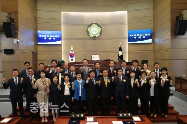 개원식에서 의원들은 67만 시민 앞에 천안시의 발전을 위해 법령 준수와 주민의 권익신장과 복리증진 및 지역사회 발전을 위해 직무를 성실히 수행할 것을 엄숙히 선서했다.