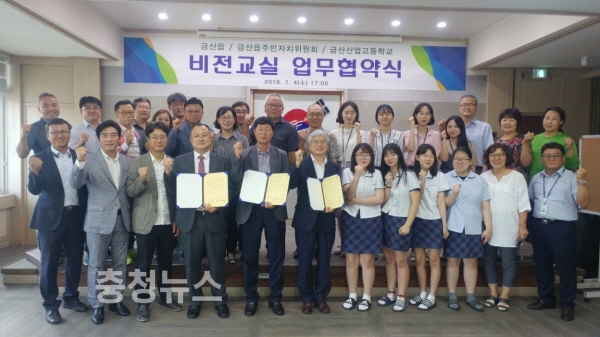 충남 금산읍사무소(읍장 길성용)와 금산읍주민자치위원회(위원장 한정만), 금산산업고(교장 김용정)는 지난 4일 금산읍사무소에서 ‘비전교실’ 운영을 위한 업무협약을 체결했다.