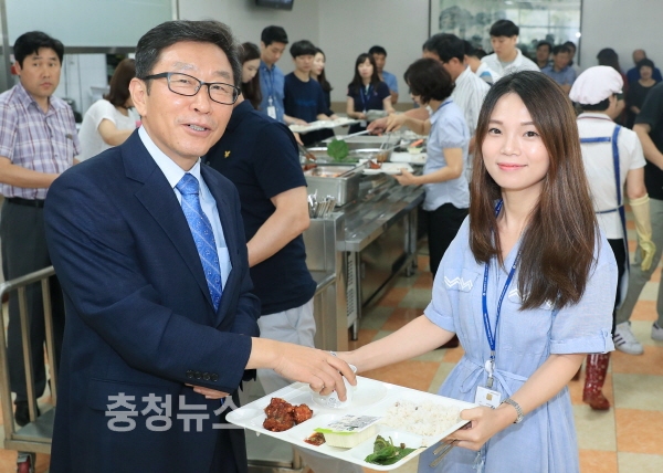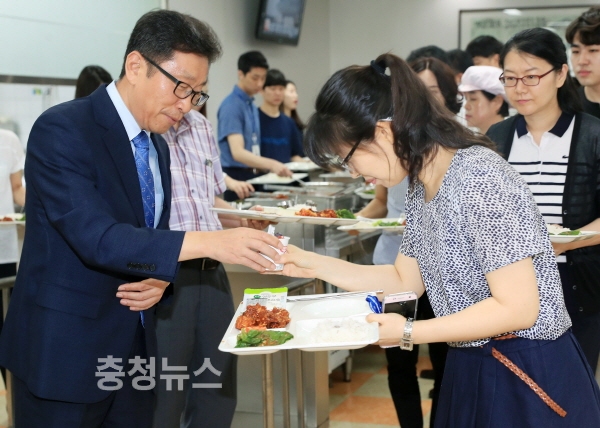 별도의 취임식 없이‘직원 배식 봉사’로 업무 시작