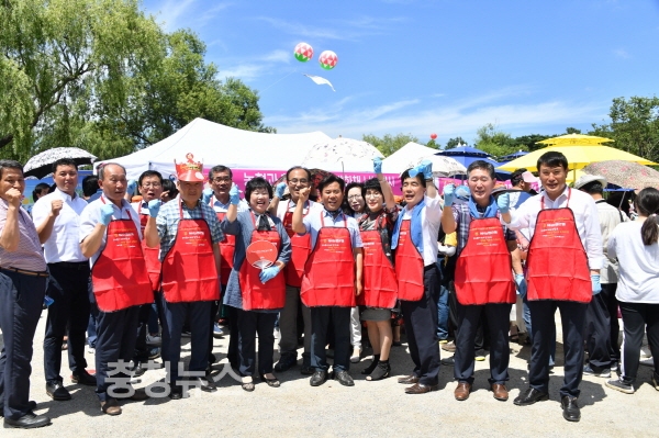 박정현 부여군수는 행사장을 찾은 관광객에 감사의 마음을 전하며 부여의 자랑인 굿뜨래 수박의 우수성을 알리고 직접 수박화채를 나눠주는 등 무더운 날씨에도 서동연꽃축제의 성공개최를 위해 함께 자리했다.
