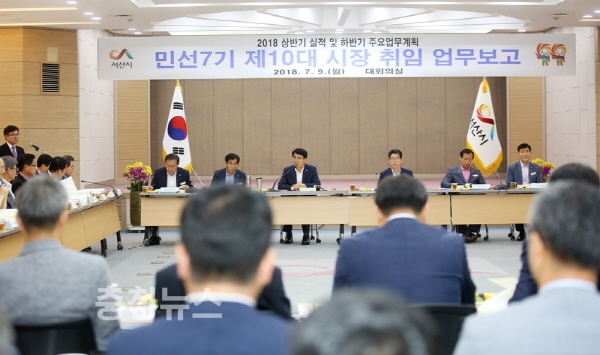 9일 시청 대회의실서 민선7기 제10대 시장 취임 업무보고회 열려