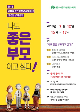대전 대덕구정신건강복지센터(센터장 최경숙)가 오는 12일 중리중학교 가온당에서 ‘나도 좋은 부모이고 싶다’를 주제로 정신건강 공개강좌를 개최한다.