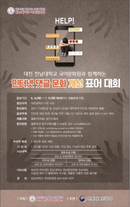 한남대(총장 이덕훈) 국어문화원은 건전하고 건강한 인터넷 댓글 문화 형성을 위해 ‘인터넷 댓글 문화 개선 표어 대회’를 개최한다고 9일 밝혔다.