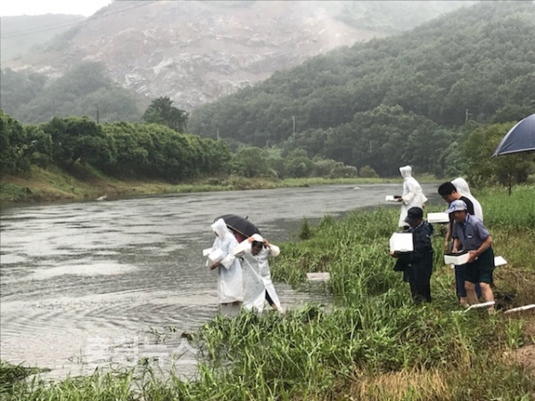 은산면 용두리 지천에 참게 5만8천 마리, 다슬기 125만 패 방류