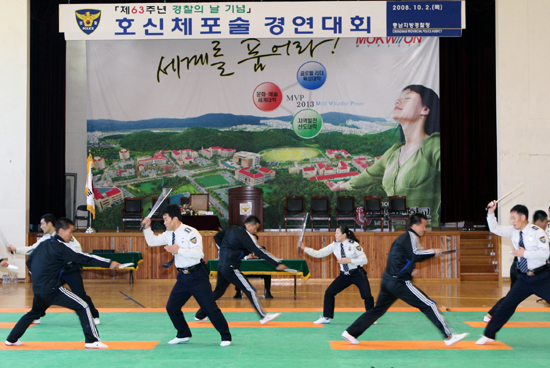 제 63주년 경찰의 날을 기념한「충남경찰 호신체포술 경연대회」가 김동민 충남경찰청장과 선수단 등 250여명이 참석한 가운데 2일 10시부터 목원대학교 종합체육관에서 열렸다.