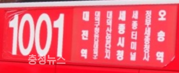 대전역 ~ 오송역을 운행하는 광역BRT(1001번 노선)가 12일부터 기존 14대에서 18대로 증차 운행한다.