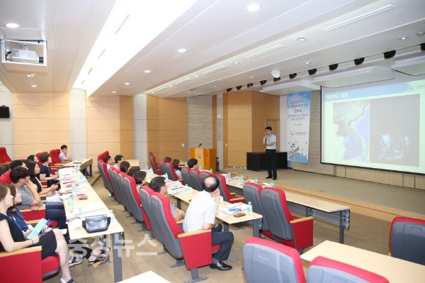 2017년도 원자력 이해증진 세미나에 참석한 교원들이 연구자의 강의를 듣고 있다.
