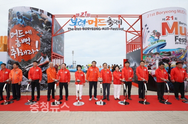 충남 보령시는 13일 오전 대천해수욕장 머드광장에서 머드체험시설 개장식을 열고 본격적인 제21회 보령머드축제의 개막을 알렸다.