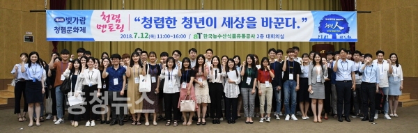 한국농수산식품유통공사(aT, 사장 이병호)는 '제4회 빛가람 청렴문화제'의 일환으로 지난 12일, aT 본사에서 광주‧전남지역 대학생을 대상으로 ‘청렴멘토링’행사를 개최했다.