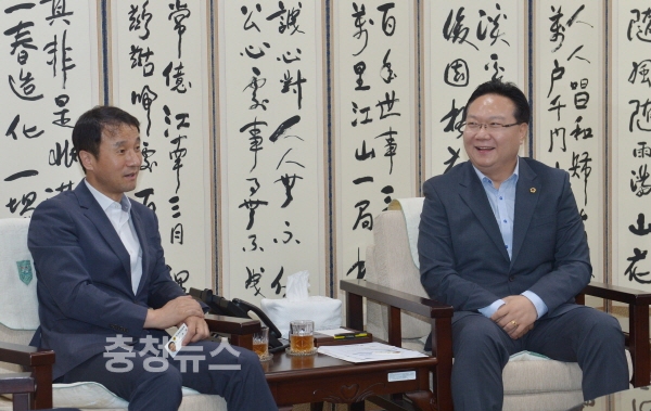충남도의회 유병국 의장은 16일 도의회에서 한병도 청와대 정무수석을 만나 지방분권 강화와 지방의회 인사권 독립 등 의정 현안 사업에 대한 지원을 요청했다.