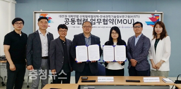 대전권 대학연합 산학협력협의체(회장교, 한남대학교)는 시장중심 기술사업화 전문가 양성교육과 세대 융합형 일자리 창출을 위해 한국과학기술정보연구원(KISTI)과 공동협력 업무협약을 체결했다고 18일 밝혔다.