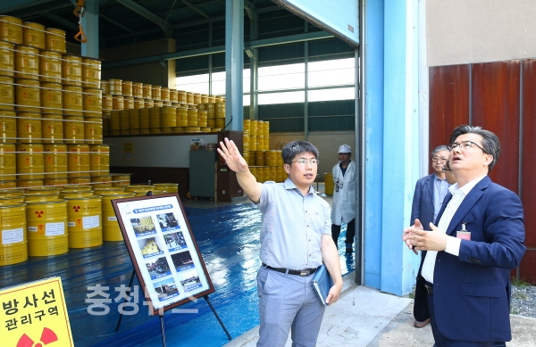 19일 정용래 대전 유성구청장이 한국원자력연구원을 방문해 하나로연구시설과 중‧저준위 방사성 폐기물 저장고 시설을 점검하고 안전관리를 당부했다.