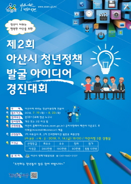 충남 아산시(시장 오세현)는 청년이 머무는 행복한 아산을 만들기 위해 ‘제2회 청년정책 발굴 아이디어 경진대회’를 개최한다고 20일 밝혔다.