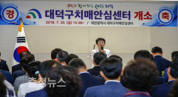 대덕구 치매안심센터 개소식에서 축사를 하고 있는 박정현 대덕구청장
