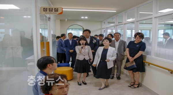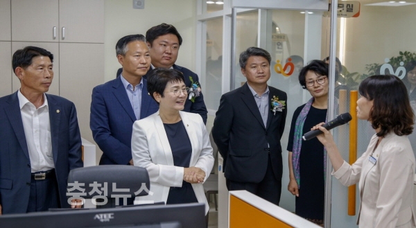대덕구 치매안심센터 내부를 돌아보고있는 박정현 구청장과 관계자들