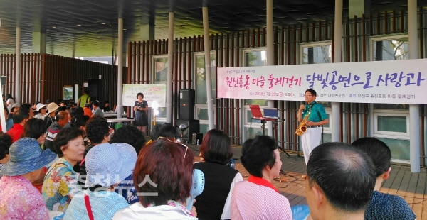 행사에 참여한 주민들은 저녁 6시부터 시작된 색소폰 공연과 부채춤 등 다채로운 공연 관람 후 원신흥동 갑천변 일대 달빛걷기에 참여했다.
