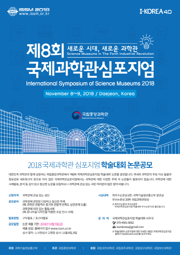 국립중앙과학관(관장 배태민)이 제8회 국제과학관심포지엄 학술대회 논문을 공모한다.