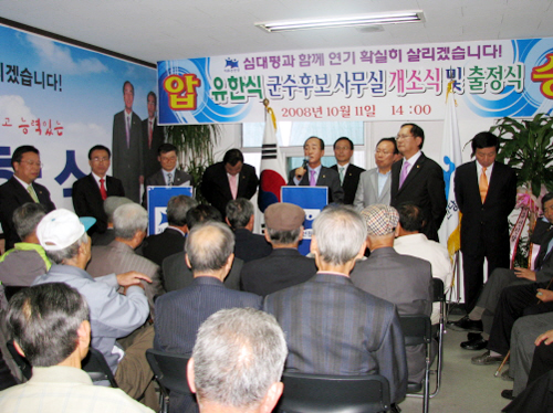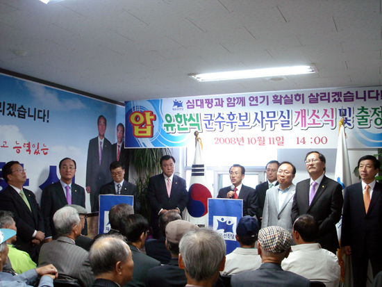 오는 10월29일 충남연기군수 보궐선거후보 등록을 앞두고 한나라당 기호1번 연기군수 예비후보 최무락와 자유선진당 기호3번 유한식후보가 11일과 12일 중앙당 지도가 대거 참석한 가운데 각각 사무실 개소식을 열고 선거전에 돌입했다.
