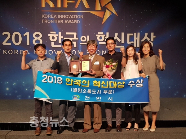 충남 천안시가 24일 서울 더플라자호텔에서 열린 ‘2018 한국의 혁신대상’ 시상식에서 열린 소통을 가장 잘 실천한 지자체로 선정됐다고 밝혔다.