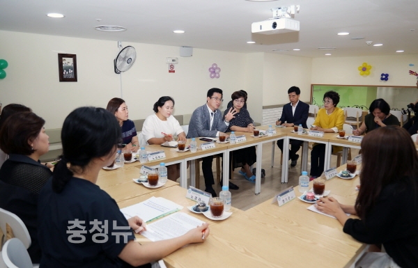 이날 허태정 시장은 유성구 노은동에 위치한 대전육아종합지원센터에서 근로기준법 개정 등에 따른 보육현장의 애로사항을 들었다.