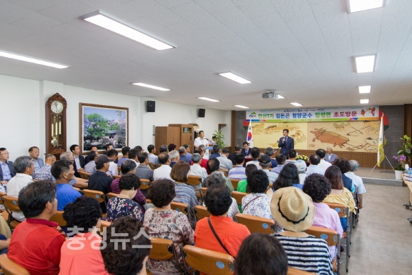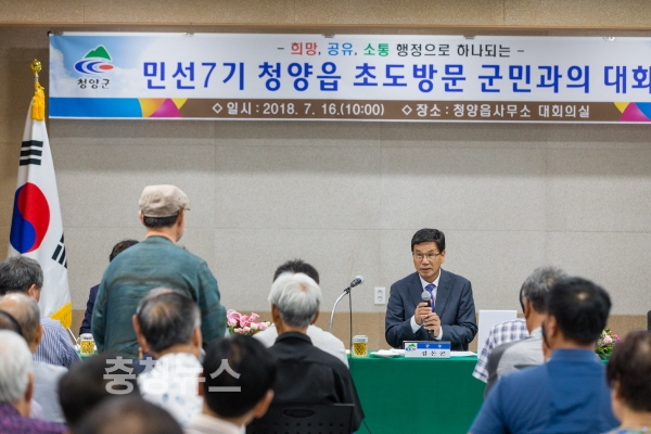 김돈곤 청양군수가 민선7기 취임과 함께 실시한 읍·면 초도방문에서 군민이 중심이 되는 청양 발전의 비전을 제시했다.