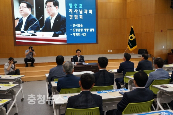 이번 농정간담회는 양승조 도지사가 주재하며 충남도 도정방향에 대해 설명하고 지역농업 발전을 위한 조합장들의 건의사항을 청취하는 시간으로 진행됐다.