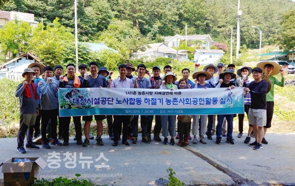 대전시설관리공단(이사장 김근종)은 24일 서구 기성동 지역 농가를 방문해 일손돕기 농촌사회공헌활동을 실시했다.
