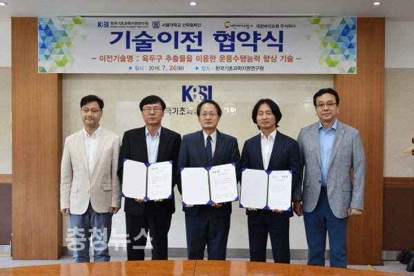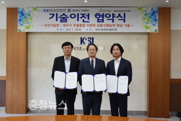 KBSI는 대한바이오팜주식회사(대표 반경태, 이하 대한파이오팜)과  24일 대덕본원에서 기술이전(선급기술료 20억 원, 경상기술료 총 매출액의 2%) 협약식을 개최하고 본격적인 항노화 기술 사업화에 착수한다.
