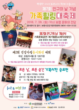 충남 보령시는 제7회 인구의 날을 기념해 오는 28일 오전 10시부터 보령문화의전당 일원에서 2018 가족힐링 대축제를 개최한다.