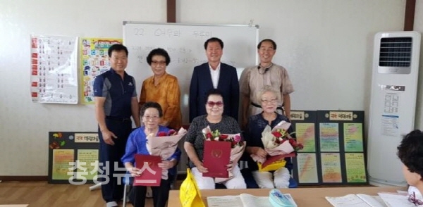 이 날 시상식은 신진2리 신상권 이장과 홍성문해교육사회 박홍임 회장과 유성희 총무, 군 관계자와 문해교육 2단계 재학생 어르신 12명 등이 참석한 가운데 홍성군청 행정복지국 이승우 국장이 상장을 교부하고 함께 수상의 기쁨을 나누었다.