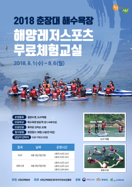 SUP체험교실은 내달 1일부터 3일까지 오전11시와 오후3시 1시간30분씩 2회 운영되고 생존수영교실은 4일부터 6일까지 하루에 오전11시, 오후1시, 오후4시 1시간씩 3회 진행된다.