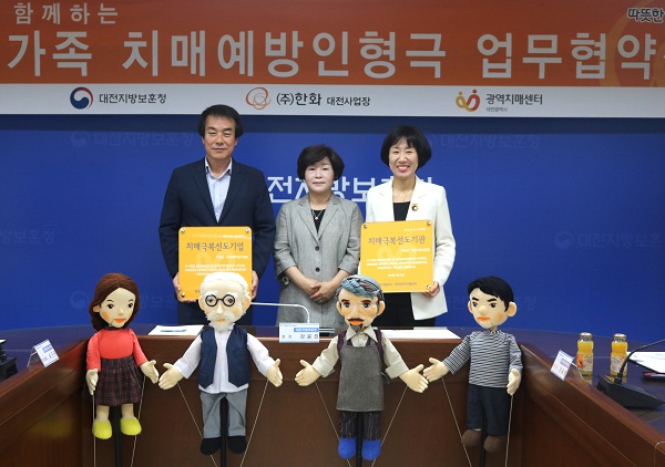 이에따라 대전광역치매센터와 대전지방보훈청, (주)한화대전사업장 3개 기관은 전 직원을 대상으로 치매교육 및 홍보를 실시하고, 치매예방 인형극을 활용한 지역사회 치매정보 알리기에 앞장 설 예정이다.