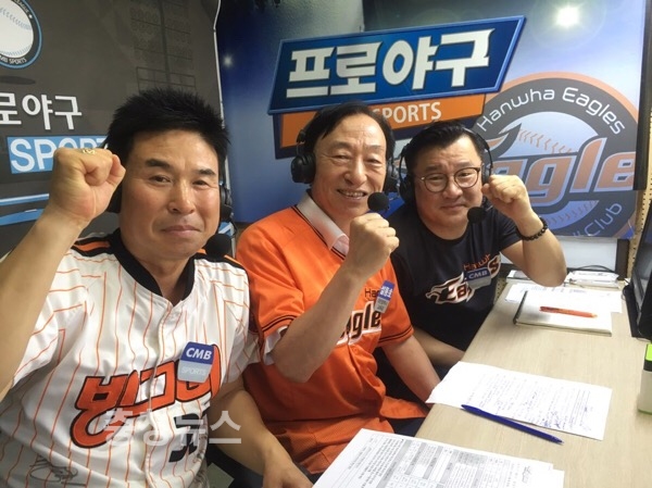 설동호 대전교육감이 25일 한화생명 이글스파크에서 열린 〈2018 신한은행 MY CAR KBO리그〉 한화 이글스와 KIA 타이거즈의 경기에서 1일 캐스터로 중계를 하고 있다.