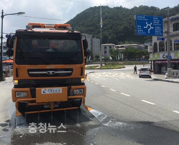 시에 따르면, 연일 계속되는 폭염으로 인해 포장변형 등 도로시설물 변형이 발생해 안전사고 발생 위험이 높아짐에 따라 7월말부터 시가지 주요 노선을 선정 도로변 살수작업을 중점적으로 시행하고 있다.