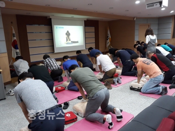 이번 교육은 충남대학교 권역응급의료센터의 협조로 대전하수처리장에 근무하는 환경시설본부 직원 25명을 대상으로 실시됐다.