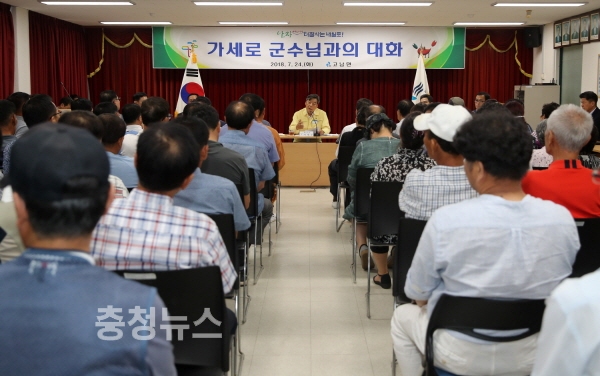 군은 이번 군민과의 대화를 통해 가세로 군수가 8개 읍·면과 지역 경로당, 어려운 가정 등을 방문해 군민 880명과 만나 280건의 건의사항을 접수받았다고 밝혔다.