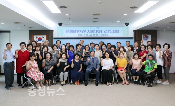 장종태 서구청장은 27일 구청 대회의실에서 ‘생활 안전 지킴이’ 70명과 민생행정 강화를 위한 간담회를 가졌다.