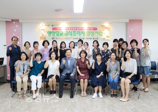 대전 서구(구청장 장종태)는 지난 27일 용문동 대전여성인력개발센터에서 수강생 20명이 참석한 가운데 ‘영양 맞춤 급식조리사 양성교육’ 수료식을 가졌다.