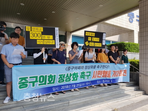 지난 25일 대전 시민단체가 대전 중구의회 정상화 촉구에 나섰다.