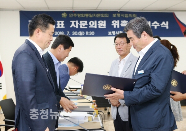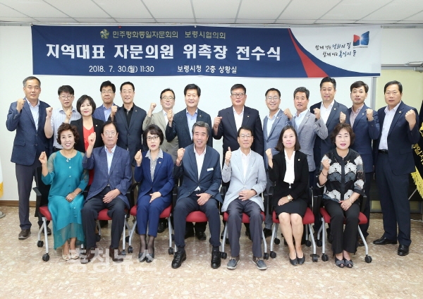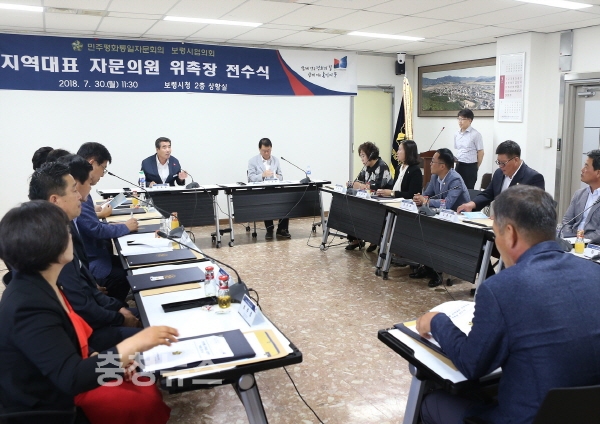 충남 보령시는 30일 오전 시청 상황실에서 김동일 대행기관장(시장)과 김정원 협의회장, 지역대표(지방의원) 자문위원 등 20여 명이 참석한 가운데 민주평통 지역대표 자문위원 위촉장 전수식을 가졌다고 밝혔다.
