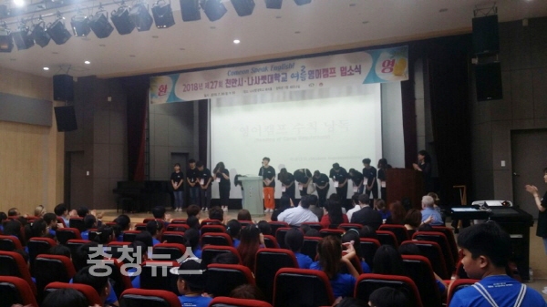 ‘2018년 천안시 여름방학 영어캠프’가 30일 관내 초·중학생 400명을 대상으로 나사렛대학교에서 입소식을 가졌다.