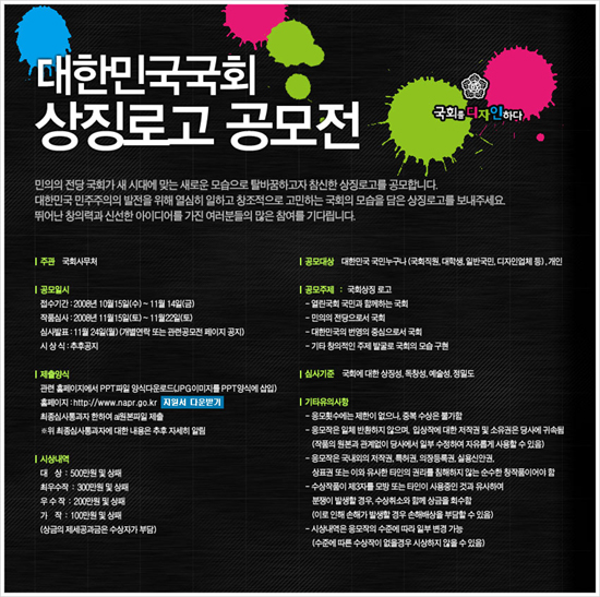 ※ 첨부 : 국회상징로고 공모전 포스터, 응모지원서