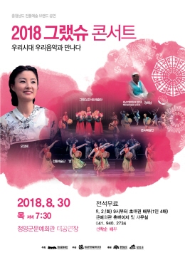 충남문화재단의 대표 기획 브랜드 공연 ‘2018 그랬슈 콘서트’ 청양 공연이 다음달 30일 오후 7시30분 청양문예회관 대공연장에서 막을 올린다.