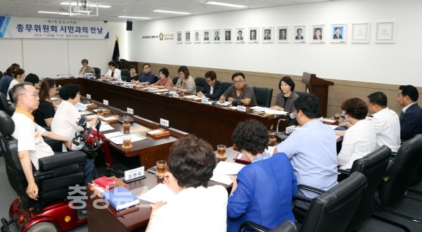 당진시의회 총무위원회(위원장 조상연)는 30일 시의회 대회의실에서 다양한 분야에서 활동하고 있는 20여명의 시민들을 초청, 소통의 시간을 가졌다.