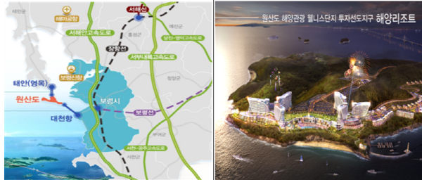 충청남도는 2015년부터 국토교통부 주관 투자선도지역 공모사업에 참여하였으나 2회 연속 탈락하여 대규모 해양관광 웰니스 단지 민간투자 유치 활성화에 어려움이 있었으나, 민선7기 양승조 도지사 취임 이후 966,748㎡ 규모의 “보령 원산도 해양관광 웰니스 단지” 투자선도지역 공모사업에 선정되는 획기적인 성과를 거두게 되었다.
