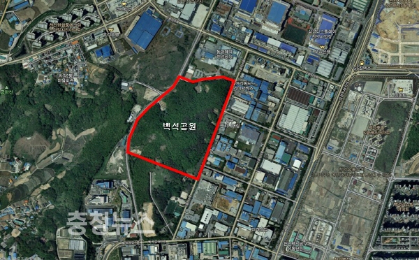 백석동 629-1번지 일원에 위치한 백석공원은 1993년 최초 공원 지정돼 제3산업단지 조성 시 배수지와 일부 체육시설 설치 후 주변 임야는 장기 미집행 공원으로 남아있다.