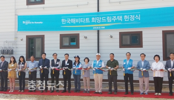 충남 천안시는 2일 오전 목천읍에서 한국해비타트 충남세종지회(회장 윤마태)와 희망의 집짓기 ‘희망드림 주택’ 1차 헌정 및 입주식을 개최했다.