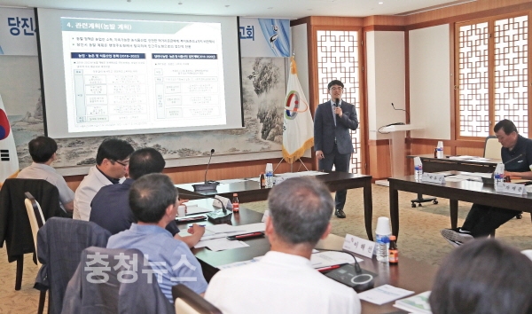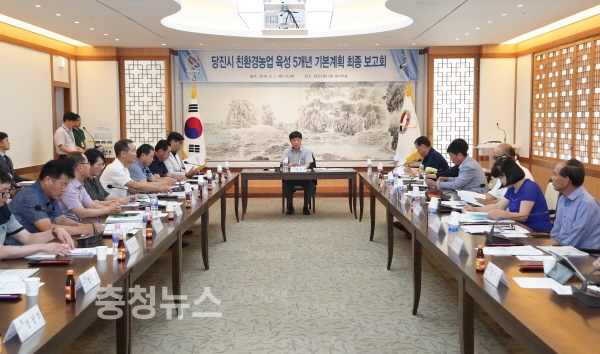 충남 당진시는 지난 2일 당진시청 해나루홀에서 심병섭 당진부시장과 당진시의회 조상연 총무위원장, 김명진 산업건설위원장을 비롯해 관련기관 관계자 등이 참석한 가운데 최종 보고회를 갖고 올해 2월부터 7월까지 추진한 ‘당진시 친환경농업 5개년 계획수립 연구용역’을 마무리했다.