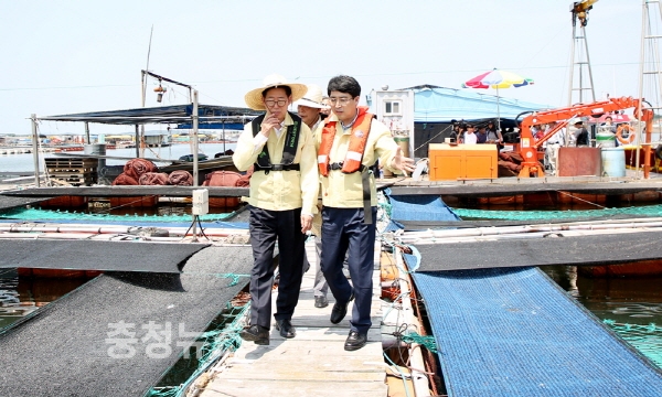우선 지난 2일 맹 시장이 양승조 충남도지사와 함께 창리 가두리 양식장을 방문해 해수온도 상승에 따른 양식어류 관리대책을 보고 받으며 피해저감 대책을 논의하고, 도 차원의 적극적인 지원을 요청했다.